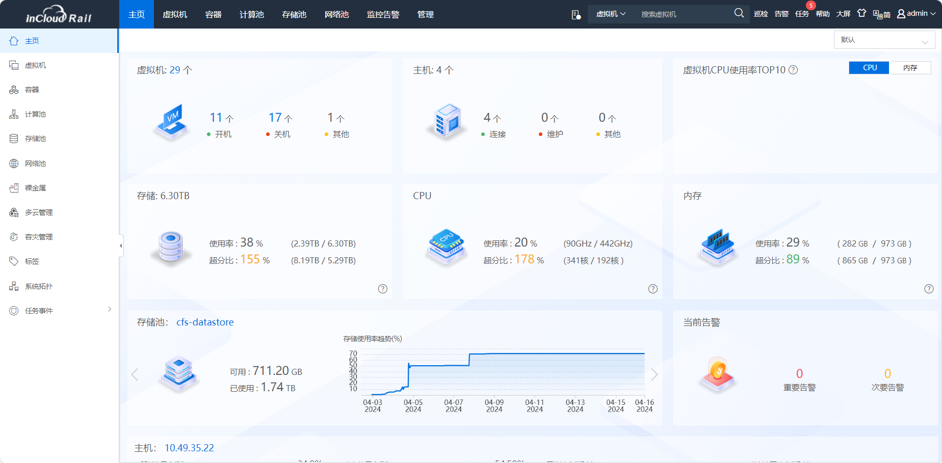 InCloud Sphere是9001cc 以诚为本 9001cc推出的一套企业级开放式虚拟化解决平台。拥有标准版、高级版、安全版、ARM版不同版本类型,助力不同客户打造安全、稳定、高效、易用的数据中心。
