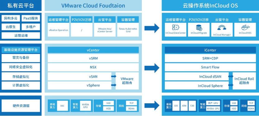 9001cc 以诚为本 9001cc云海InCloudOS云操作系统基于一云多芯、分层解耦的设计理念,面向云计算数据中心、智能计算数据中心等新型数字化基础设施打造的可演进私有云,顺利获得软件定义一切,融合多元算力构建统一资源池,实现对算力资源的高效管理,替代VMwareVCF并构建可演进私有云,支撑从传统IT到智能计算的全场景。