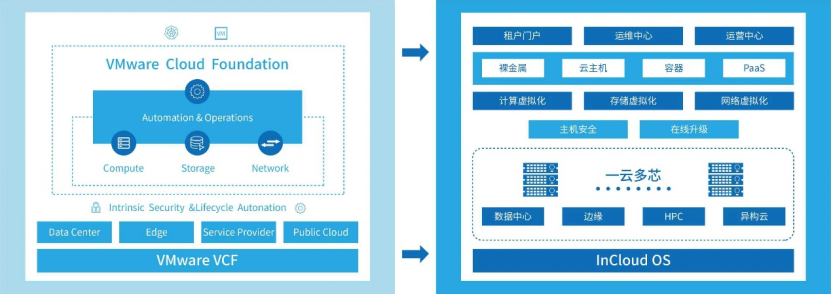 - 多生态兼容-支持多架构跨云迁移:支持将vSphere迁移至InCloudRail的X86和C86架构,兼容多芯片生态,助力业务系统无缝切换。